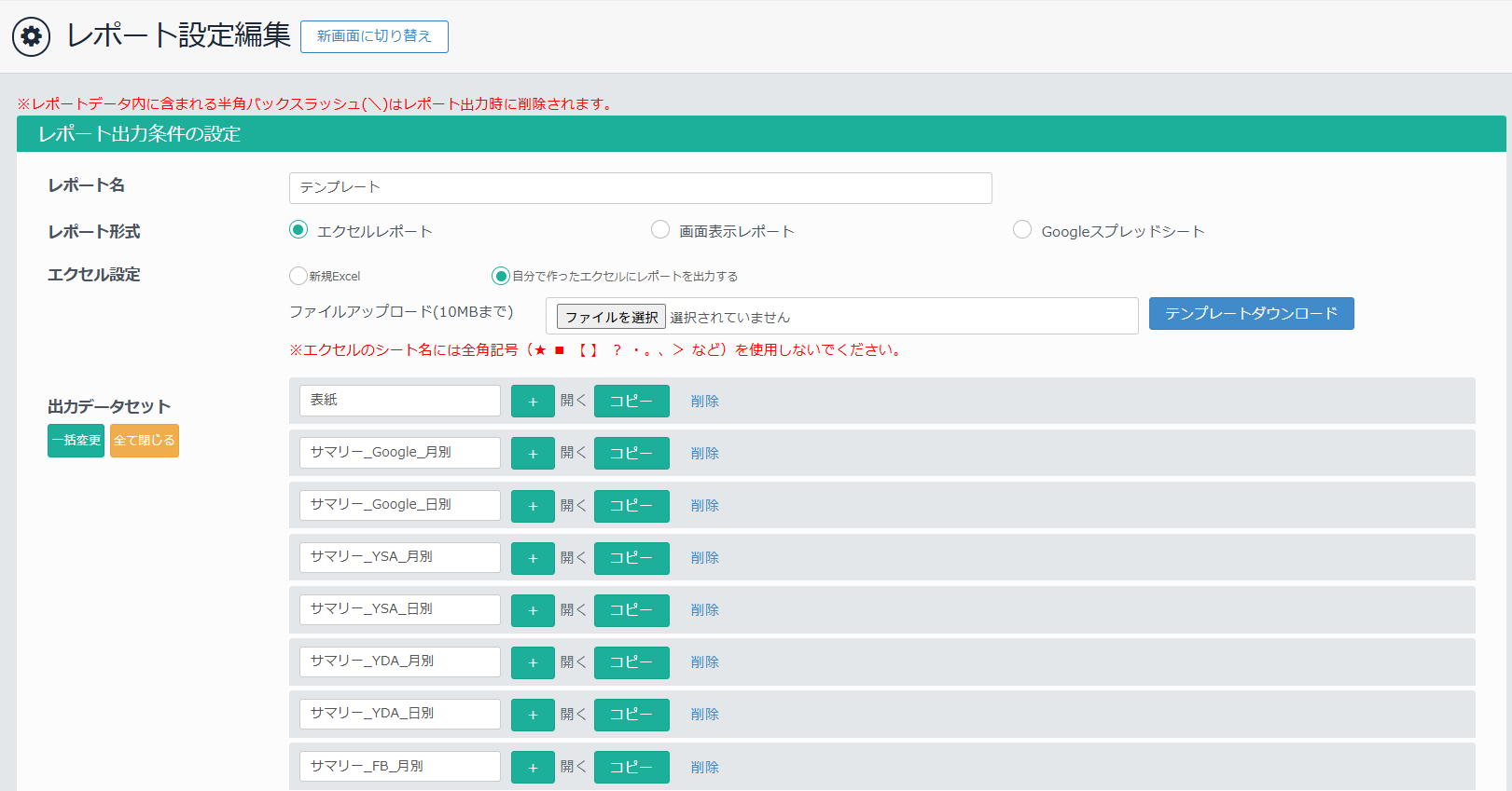 今後は新「レポート設定」画面にてレポートの作成・編集を行ってください。