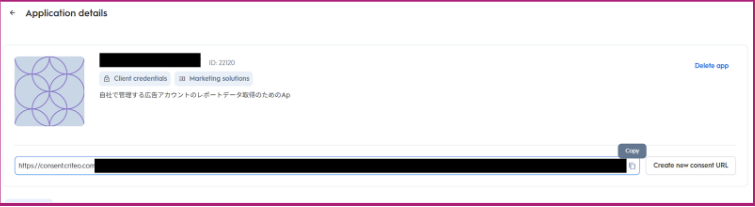同意URLが表示されるので、発行されたURL横のcopyボタンをクリックしてURLをコピーしてください。