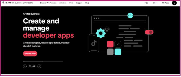 (1)TikTok API for Businessにログインし、画面右上部の「My AppMy Apps」をクリックしてください。